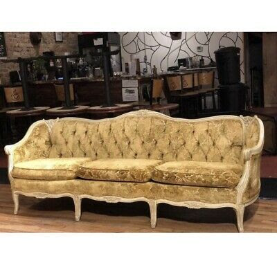 Antique French Provincial Yellow Velvet Long Sofa Victorian Mid Century Ebay Antique Sofa Long Sofa French Sofa